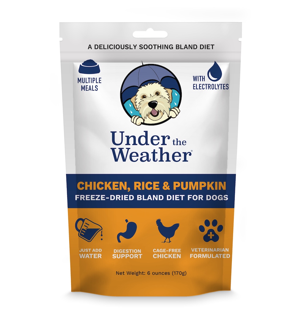 Quick and convenient freeze dried formula of 100% human-grade white meat chicken, white rice and pumpkin powder.