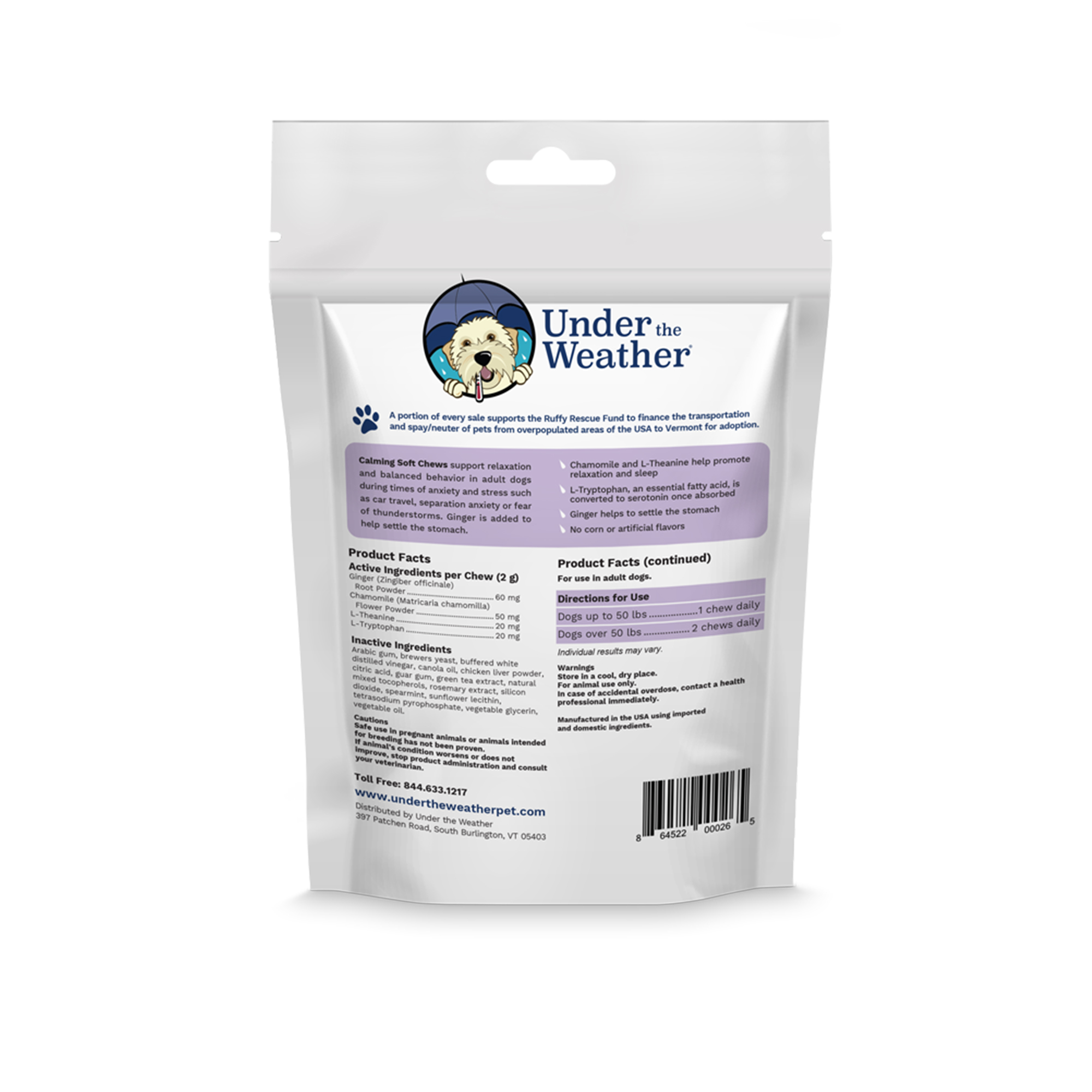 Our Calming soft chews support relaxation, balanced behavior and normal emotional balance in dogs during times of stress, such as car travel and thunderstorms.