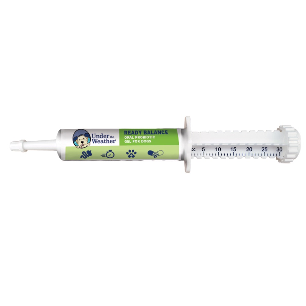 Ready Balance is a fast-acting oral probiotic gel used during times of digestive upset to support normal digestive balance. Ready Balance is a stabilized source of beneficial bacteria. It contains guaranteed levels of live (viable) probiotics, select vitamins and the prebiotic Inulin in a highly palatable gel base. When given as directed, Ready Balance helps maintain normal appetite, digestion and gut health during times of stress. Provide Ready Balance during travel, dog shows, breeding, birthing, lactation, kenneling, following antibiotic therapy and during times of digestive upset such as vomiting or diarrhea. The convenient dial-a-dose tube ensures accurate dosing levels. Dogs love the taste of this gel!