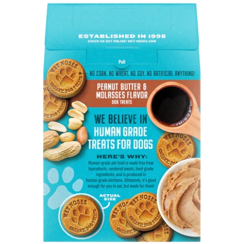 Baked in the USA, Organic, All Natural, Human Grade GRAIN FREE Peanut Butter Molasses Dog Treats by Wet Noses.