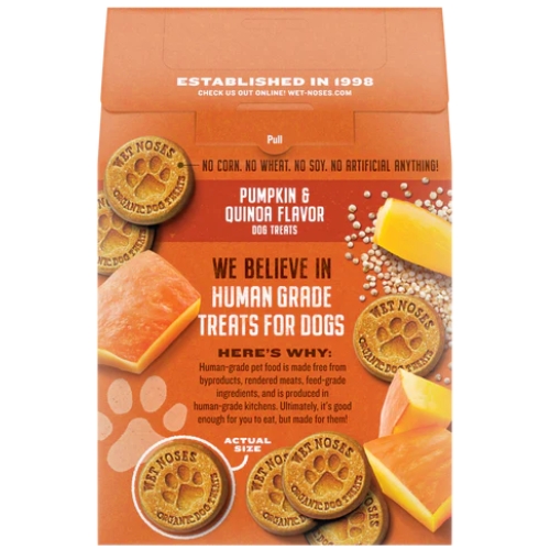 Baked in the USA, Organic, All Natural, Human Grade GRAIN FREE Pumpkin & Quinoa Dog Treats by Wet Noses.