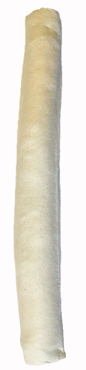 White, bulk approximately 80 gram rawhide retriever stick from a SIF certified factory in Brazil. Hides are from grass fed, free range cattle