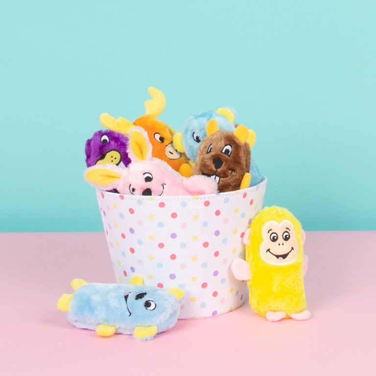 Squeakie Buddies are the perfect no-stuffing gift for small dogs! This multi-pack features a trio of your dog’s favorite Squeakie Buddies – one Bear, one Bunny and one Monkey – for three times the fun! Each toy includes 1 large Blaster for maximum squeakability!