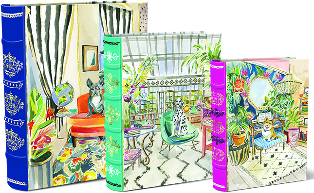 Uptown Pets Large nesting journal book boxes featuring gold foil accents and ridged spine.