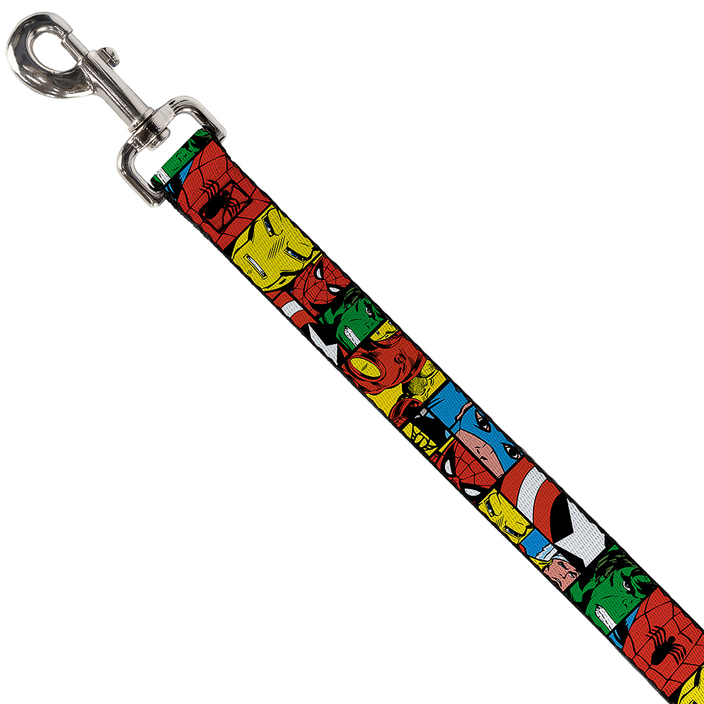 This fashion-forward dog leash is a great way to show off your favorite characters or brands. The durable components and beautiful printing ensure that the colors will continue to pop for years to come! It is made of high-density polyester and steel hardware. The leash is available in 0.5, 1.0 and 1.5 inches wide, and 4 and 6 feet in length. This product is Made in the USA by Buckle-Down Inc. and officially licensed by Marvel Comics.