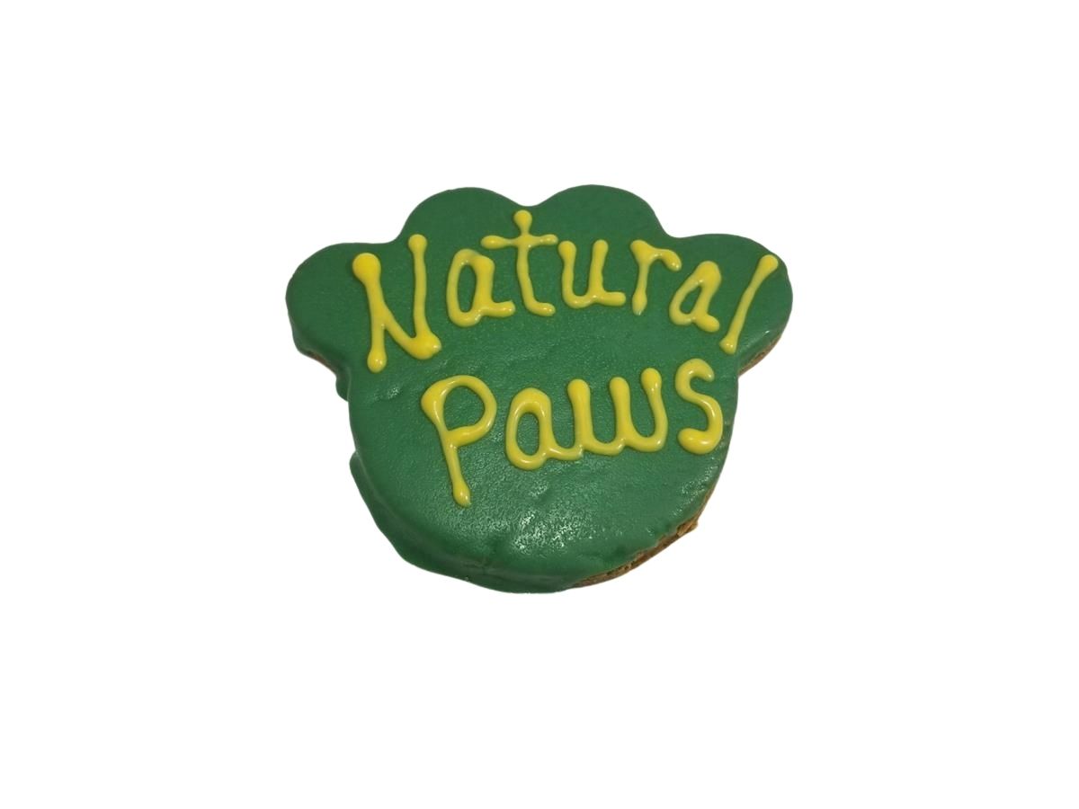 Each treat is 3 x 3.5 inches. Tray of 12 pawprint shaped treats decorated in your choice with custom wording. Additional charges may be incurred for complex customizations. Text space limited to approximately 5 to 7 letters, if you request artwork, you will be emailed to submit the art file. You can also specify icing and text color, all 12 pawprints in your case need to have the same text.