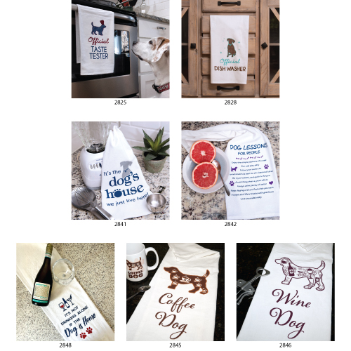 Kitchen towel assortment includes 2 each of 7 current designs!