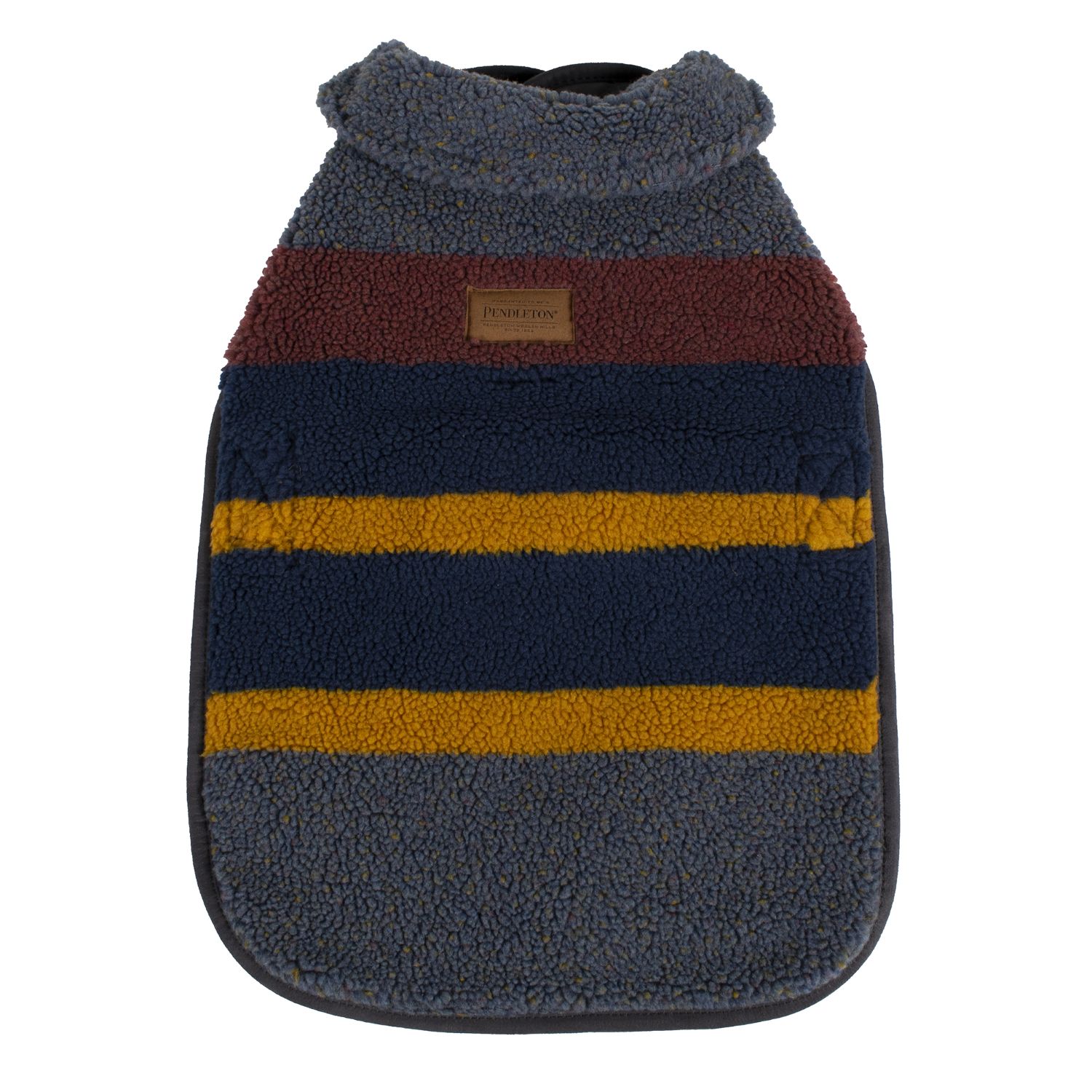 This pet coat is inspired by the Vintage Camps of America. Tents, the woods, and ruffing it all inspire the color and style of this coat. It reverses to a brown, quilted faux suede. Features a hook & loop belt for easy on/off. Plus it has a cut out to hook your leash to your dog’s harness or collar. Your pet will be ready to brave those brisk days in this coat!