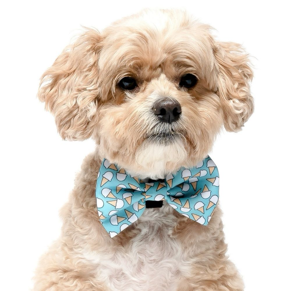 These bow ties have a velcro loop backing to attach to a dog collar or harness strap!
