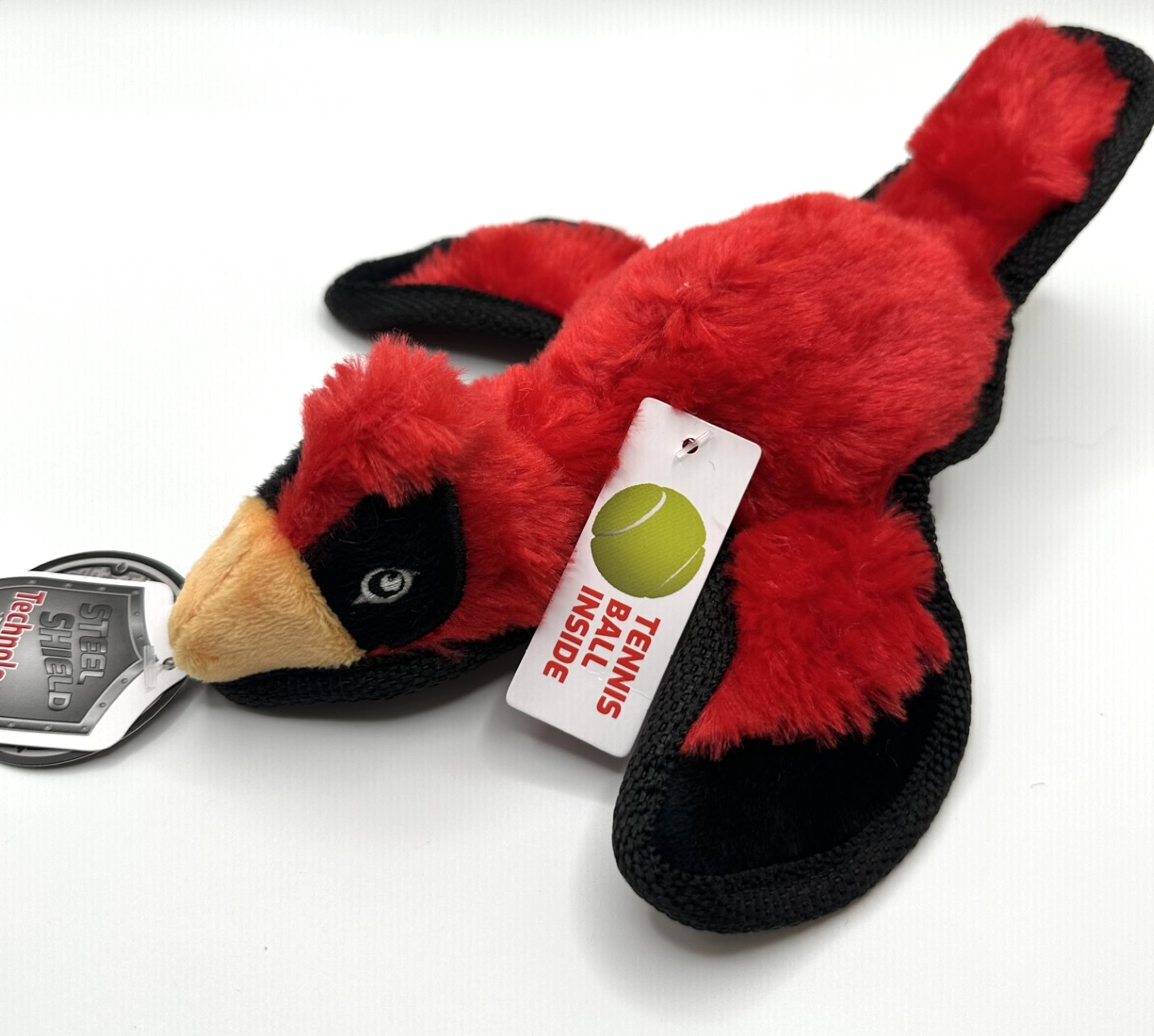 The yard birds are a medium plush toy that features heavy duty seams, a squeaker in the head, crinkle in the wings, steel shield technology and a small dog safe tennis ball in the body. They are such a versatile toy and will be sure to be your four-legged friends best new buddy.