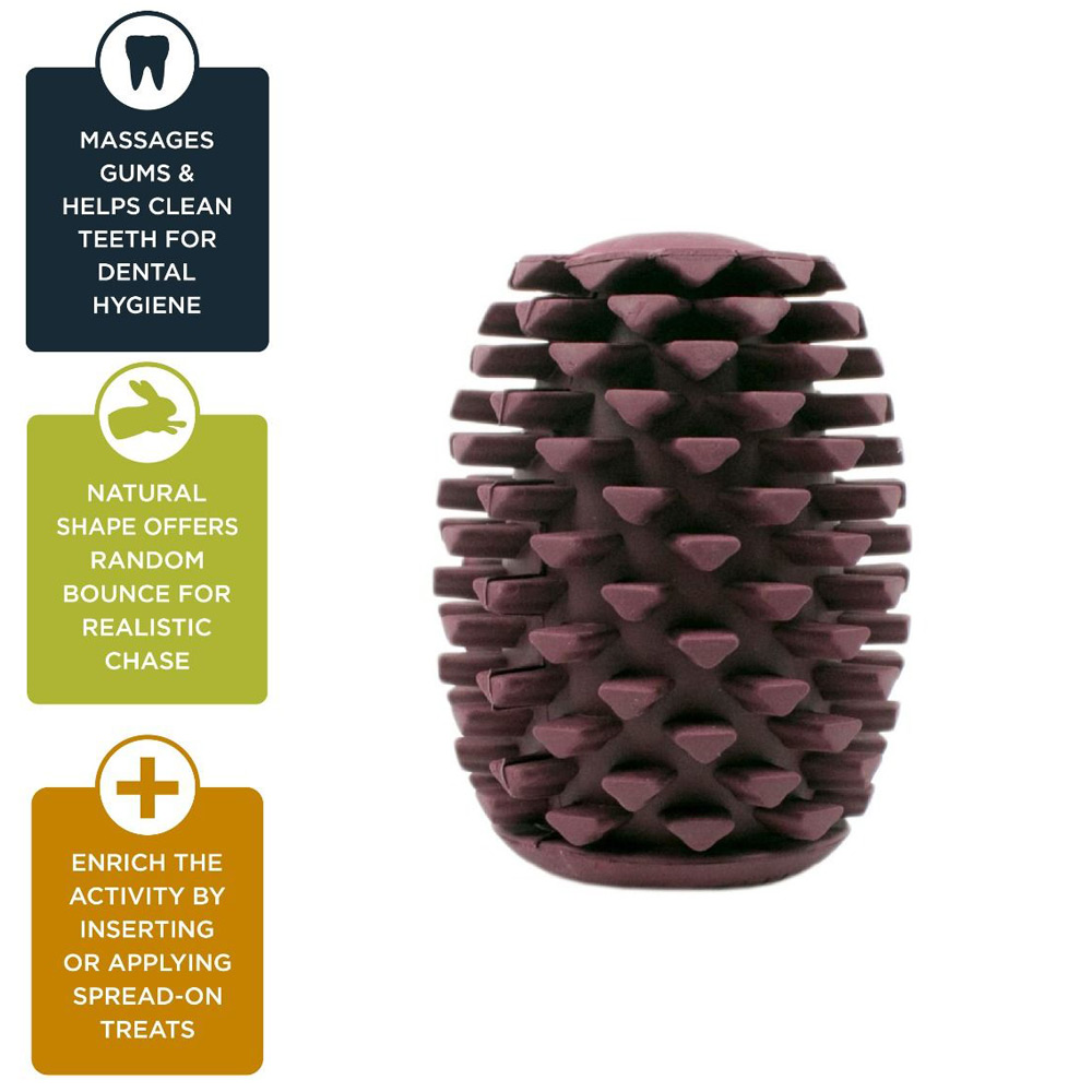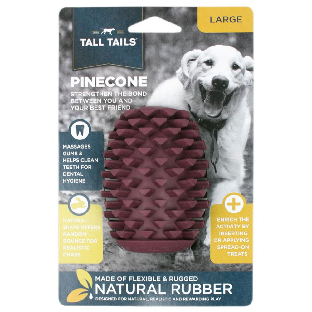 Your mischievous mutt will stay out of trouble with this fun interactive Rubber Pinecone from Tall Tails! Tall Tails interactive toys are a great way to keep your dog occupied while also exercising their body and mind. This pinecone is made out of flexible natural rubber that contours to your dog's mouth to massage and clean for good dental health. It has small crevices to hide your pup's favorite treats and food in for an engaging and rewarding playtime! And it's naturally bouncy, making it great for fetch! Dishwasher-safe for easy cleaning. Ideal for small dogs up to 25 lbs.