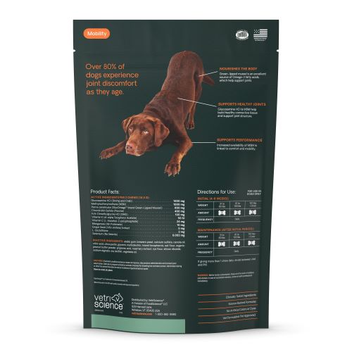 Ultimate Strength Healthy Hip & Joint (Same great GlycoFlex® Plus formula) provides dogs with ultimate strength joint support to support an increase hind leg strength by up to 41% in just four 4 weeks.* It combines 11 active ingredients, including Perna canaliculus, chondroitin sulfate, glucosamine, MSM and antioxidants to support your dog’s joints and connective tissue. Dogs love these delicious bite-sized chews available in duck, bacon and peanut butter flavors.