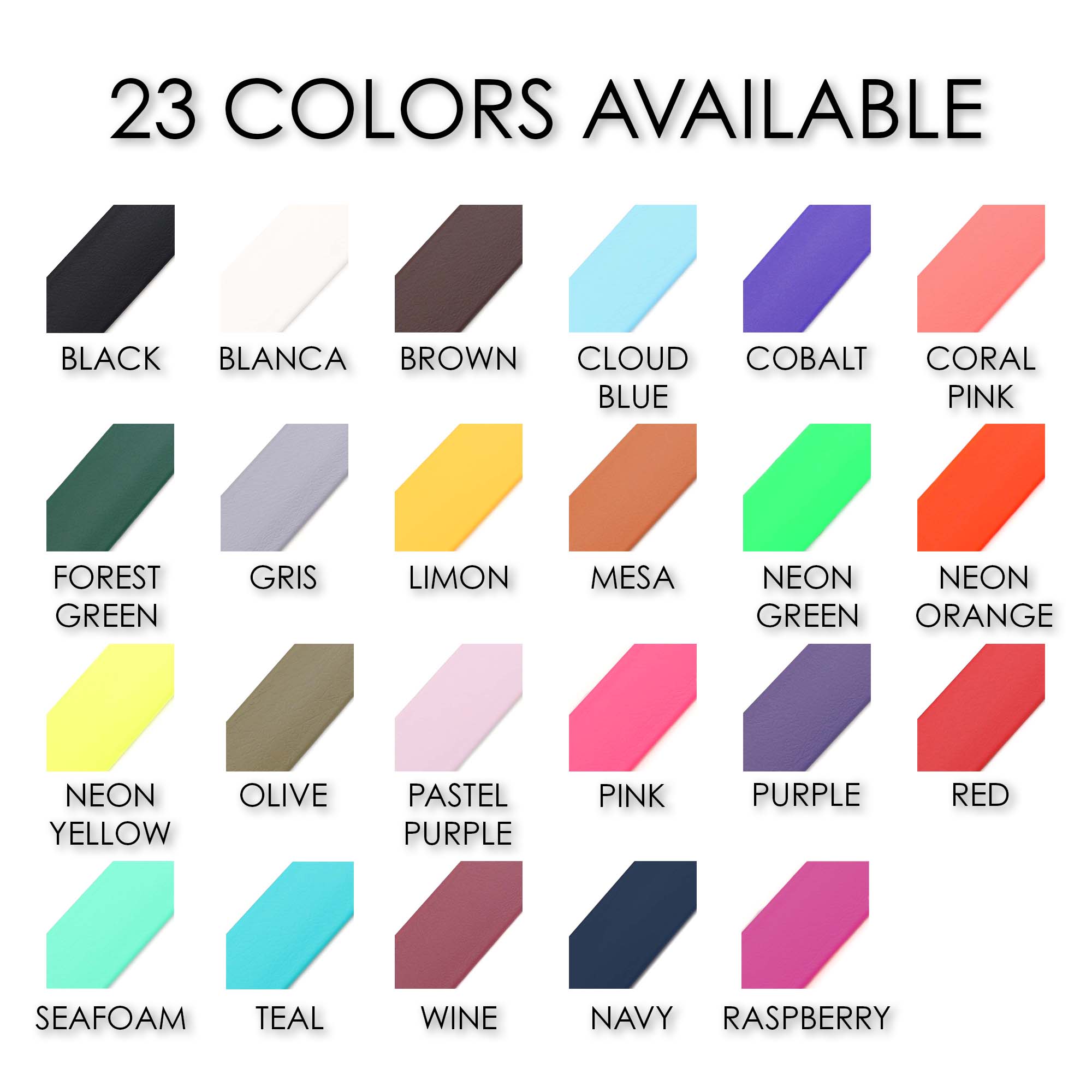 Solid brass or solid stainless steel buckles in single sided or double sided Has a great leather look without the maintenance of leather Solid cast brass and cast chrome plated d-rings Available in 20+ colors