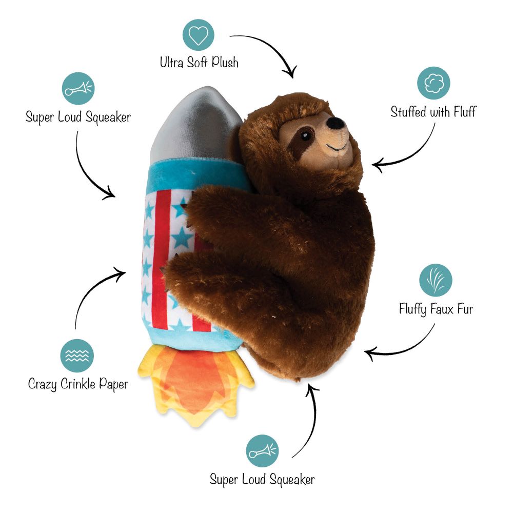 Rocket Sloth Plush Dog Toy