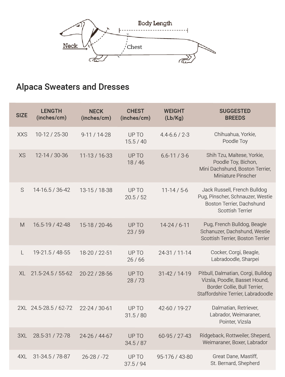 * At Alqo Wasi we’re always trying to improve our products to better suit our furry friends. In an effort for constant improvement, we have a slight reduction in the sweater’s length for 2022 Collection. Don’t worry! These are minor changes, you are still the same size.