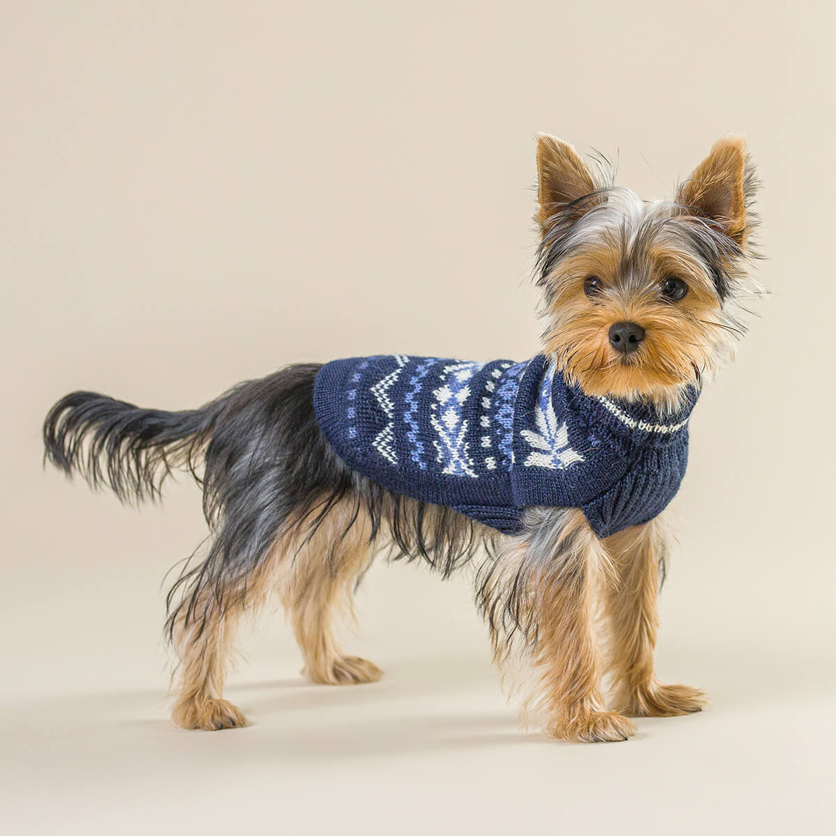 Our Winter Night alpaca dog sweater is the perfect knitted gift you have been searching for. This snowflake sweater will bring you many sweet stories with your furry friend.