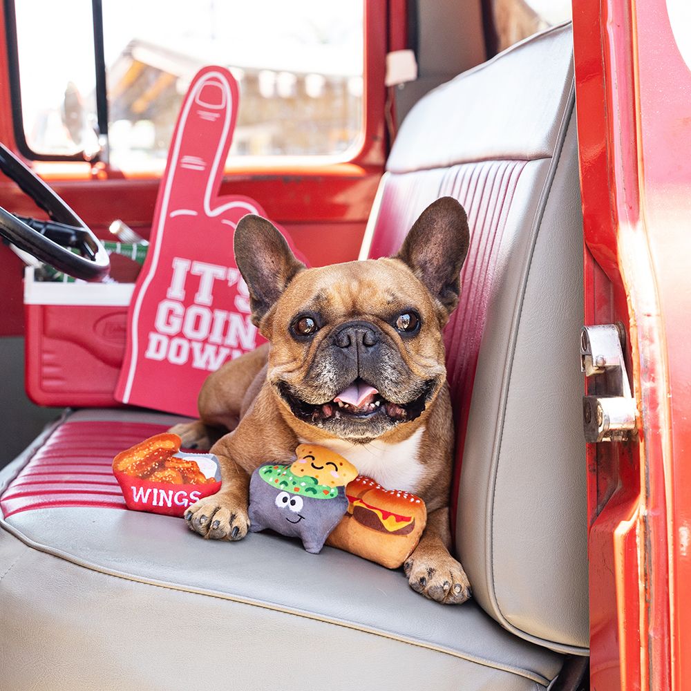 Here for the food! Petshop by Fringe Studio “Hunger Games” mini toy set is perfect for the pup that likes to play all day. Made with a super loud squeaker in each toy and stuffed with fluff, this trio will have your pup wishing it was snack time, all the time. Great for small dogs and not intended for aggressive chewers.