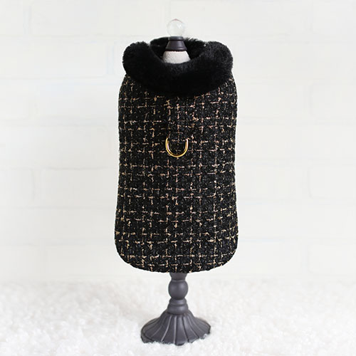 Your precious pooch will look regal in the Chantel Tweed Dog Coat by Hello Doggie. Our new coat collection was released just in time for the fall/winter season. When designing this coat we had the pooch in mind, our fur babies get cold too while they're out on the town for holiday shopping or a walk in the park. The coats are made from a beautiful soft tweed blend  fabric and are lined with faux fur for a timeless design  and to keep out that extra chill. These coats are perfect to pair up with your favorite Hello Doggie sweater, featuring adjustable velcro straps for a perfect fit when adding layers. It is easy to care for, delicate wash with no softener or bleach and air dry. Our coats are fashionable and most importantly comfortable to wear. Each Coat has a matching harness, sold separately.