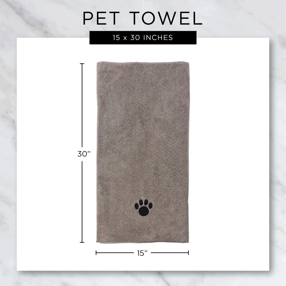 Pet Towels measure 15x30 inches and are durable, absorbent, and fast drying.