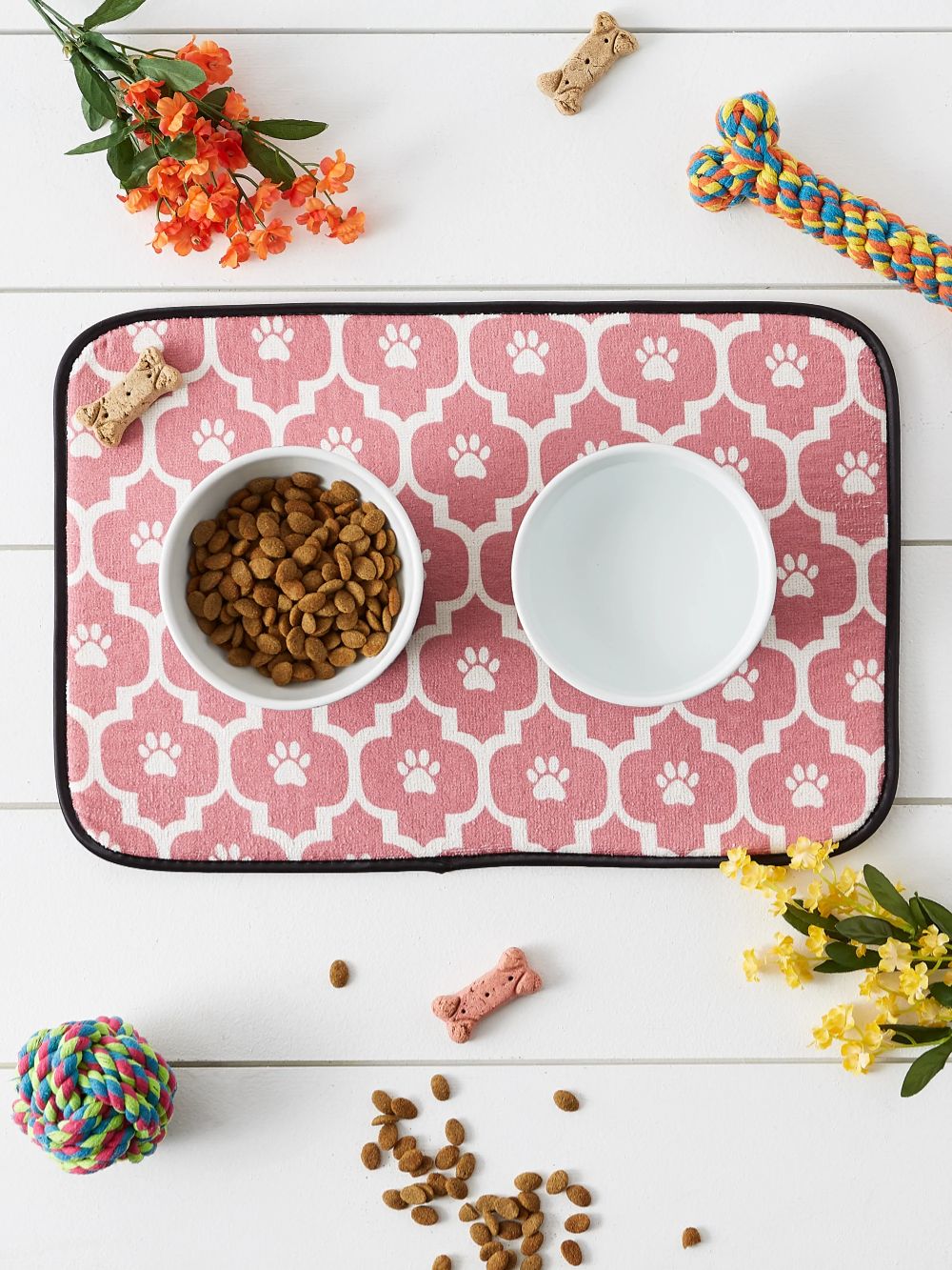 Pet food mat comes with two sizes and various designs, provides your pet with a stylish and appealing dining space.