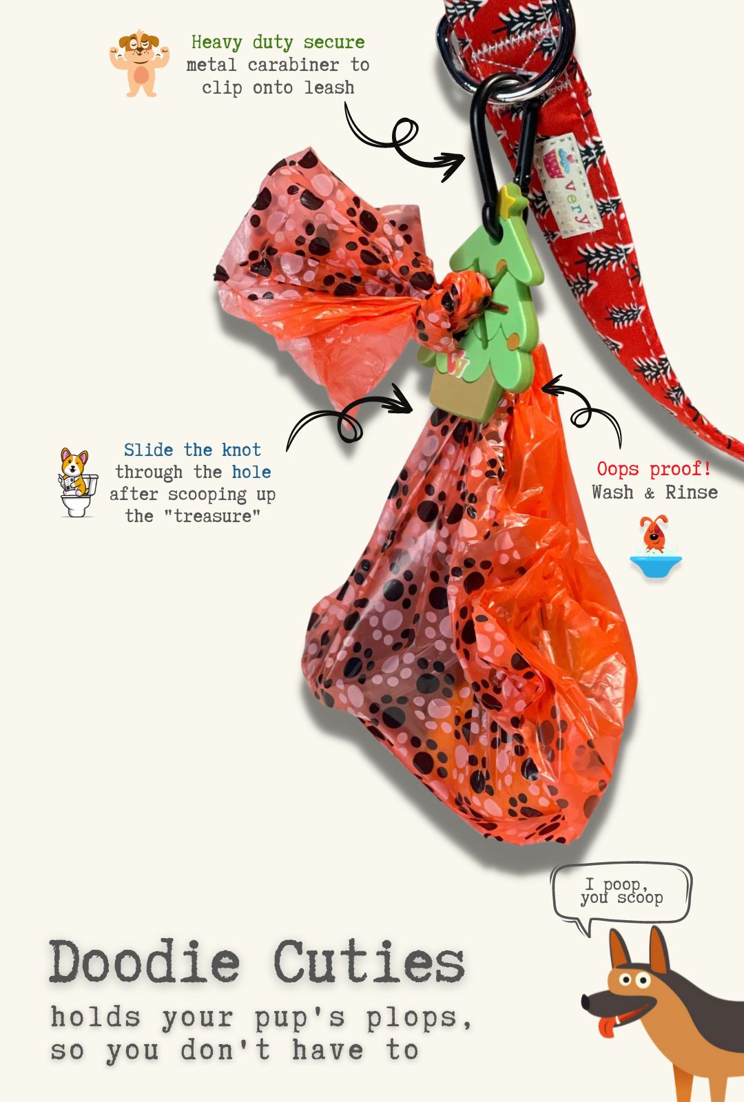 Our new doodie cuties make carrying used poop waste bags totally hands free and is stylish to boot!