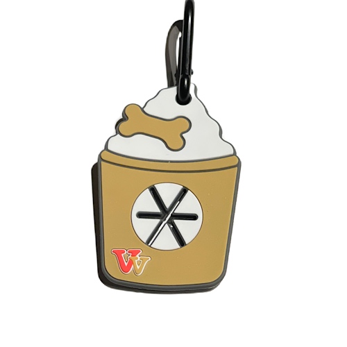 This particular doodie cutie is in our puppachino with bone pattern - which measures about 2” at the widest point by about 3” long. Comes with a black metal carabiner to easily attach to any leash!