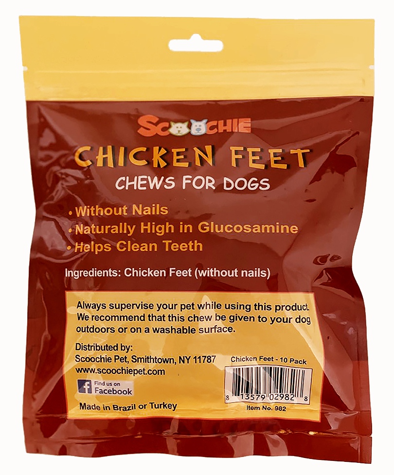 These clean chicken feet come in a full color printed, pegable, zip lock bag