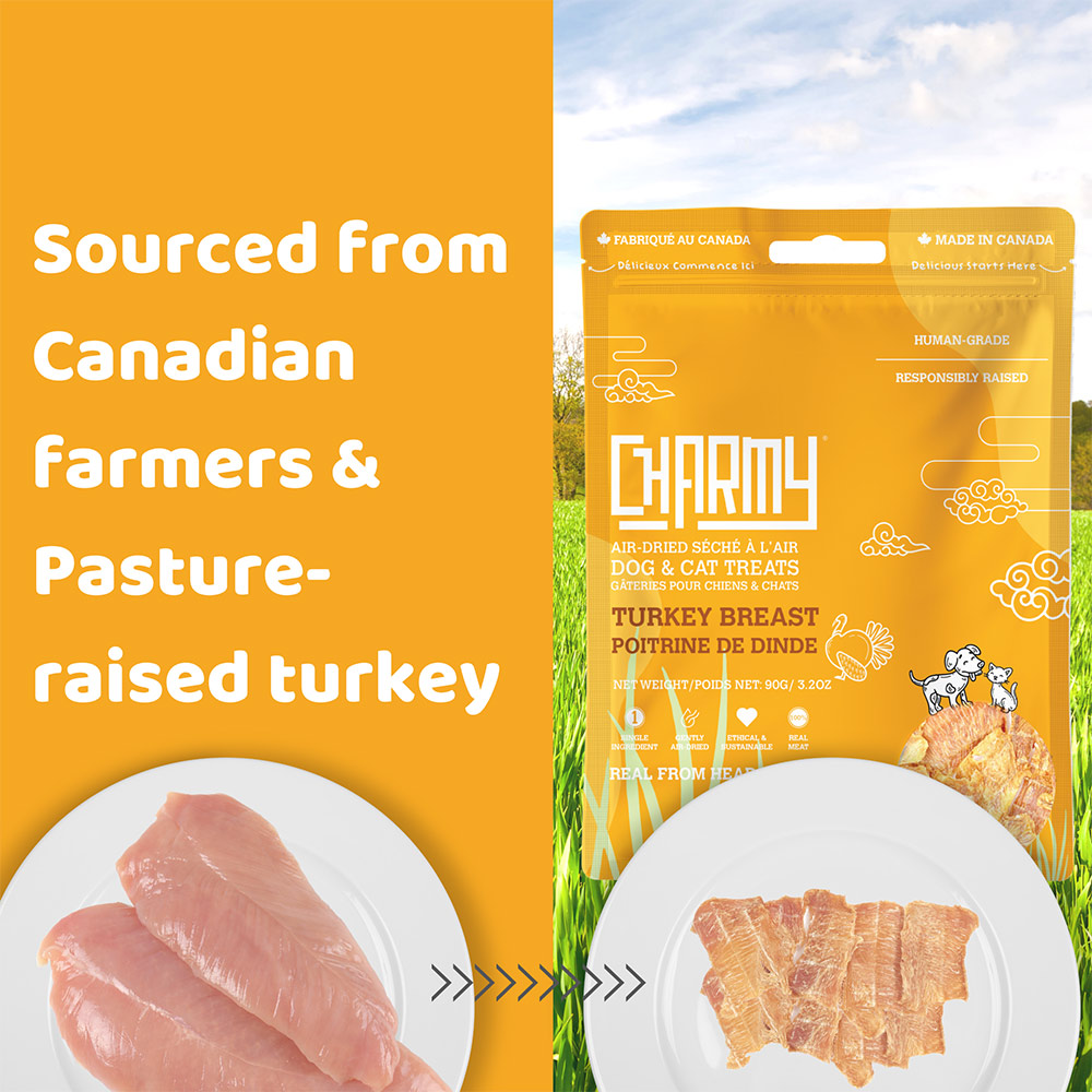 Turkey Breast - Charmy Air-Dried Dog & Cat Treats, 3.20oz. Pouch