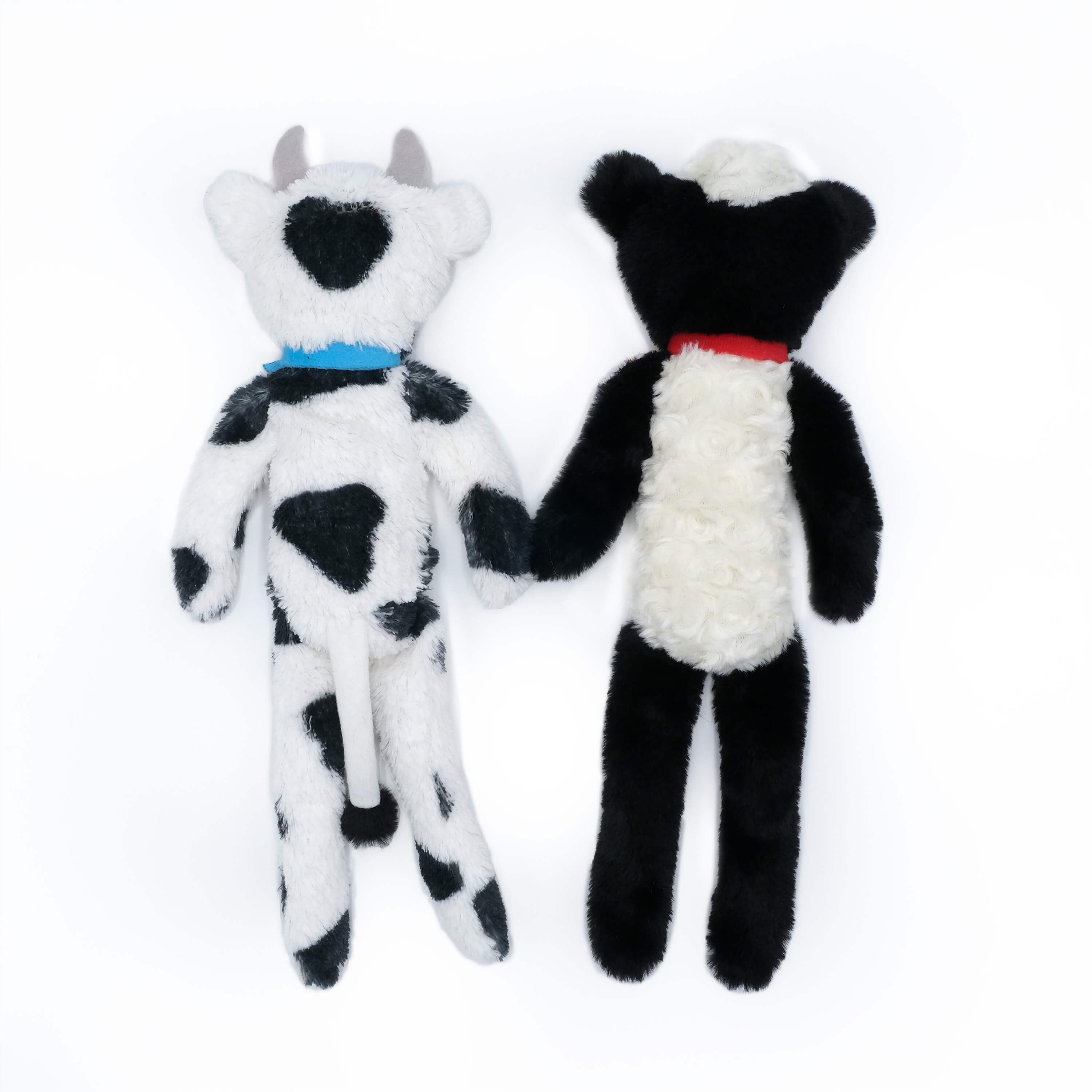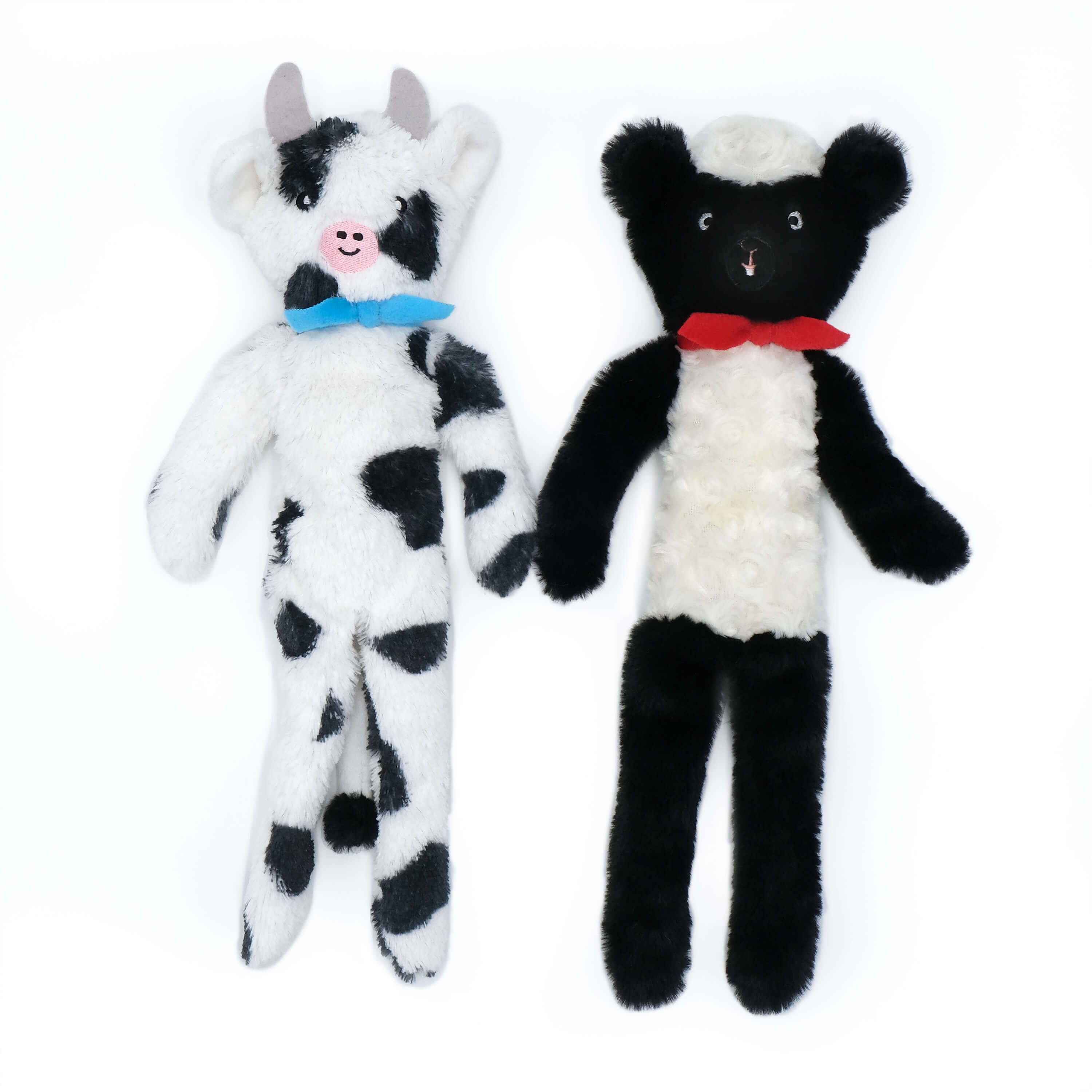 ZippyPaws Fluffy Peltz are adorable stuffing filled plush dog toys that provide hours of squeaking fun! This set includes 2 Fluffy Peltz (1 Sheep and 1 Cow). Each Fluffy Peltz toy includes 2 round squeakers.