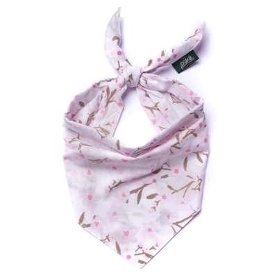 Bloom - Cherry blossoms in pink on white cotton. Tailor cut dog bandanas, sized & ready to wear.