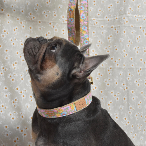 All of our accessories are made on lightweight soft cotton webbing. We use different fabrications, sourced from all over the world, accompanied by solid brass fittings and an adjustable collar. All of our products are handmade and assembled in San Francisco, California.