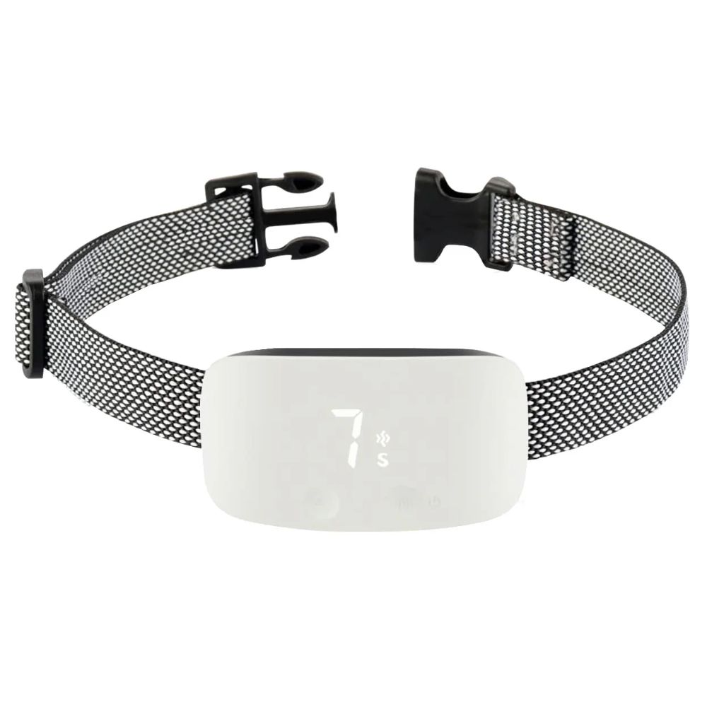 The Pet Life ® Evolution LED 7-Level Vibration and Sound Smart Anti-Bark Dog Collar is Non-Shock and features 7-Levels of both Sound and Vibration with a simultanious Sound and Vibration option that is activated at the sound of a bark. This device is equipped with a Built-in LED display screen which showcases intensity levels and and modes. Additionally, the Evolution Anti-Bark collar features an Auto-off Power Saving Mode with an extended 10 day battery period per charge with an included USB Charger. Composed of Waterproof encasing and a adjustable and durable Nylon collar that fits neck-girths from 6.5 - 24 Inches. Available in Black and White.