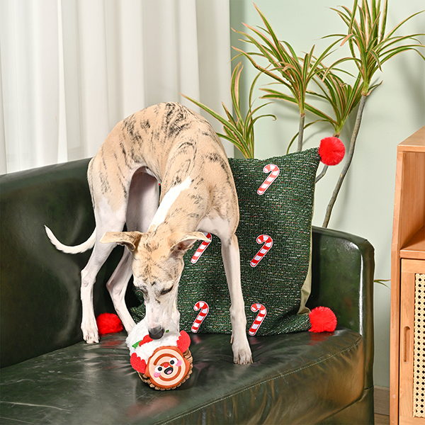 Ready to roll into the holidays? Our Yule Log dog toy is all about squeaky fun without the fluff! Made with soft corduroy and stuffed with nothing but an extra-long squeaker, it's perfect for pups who love to play hard and keep it tidy. Get ready for your dog to jingle all the way through playtime!