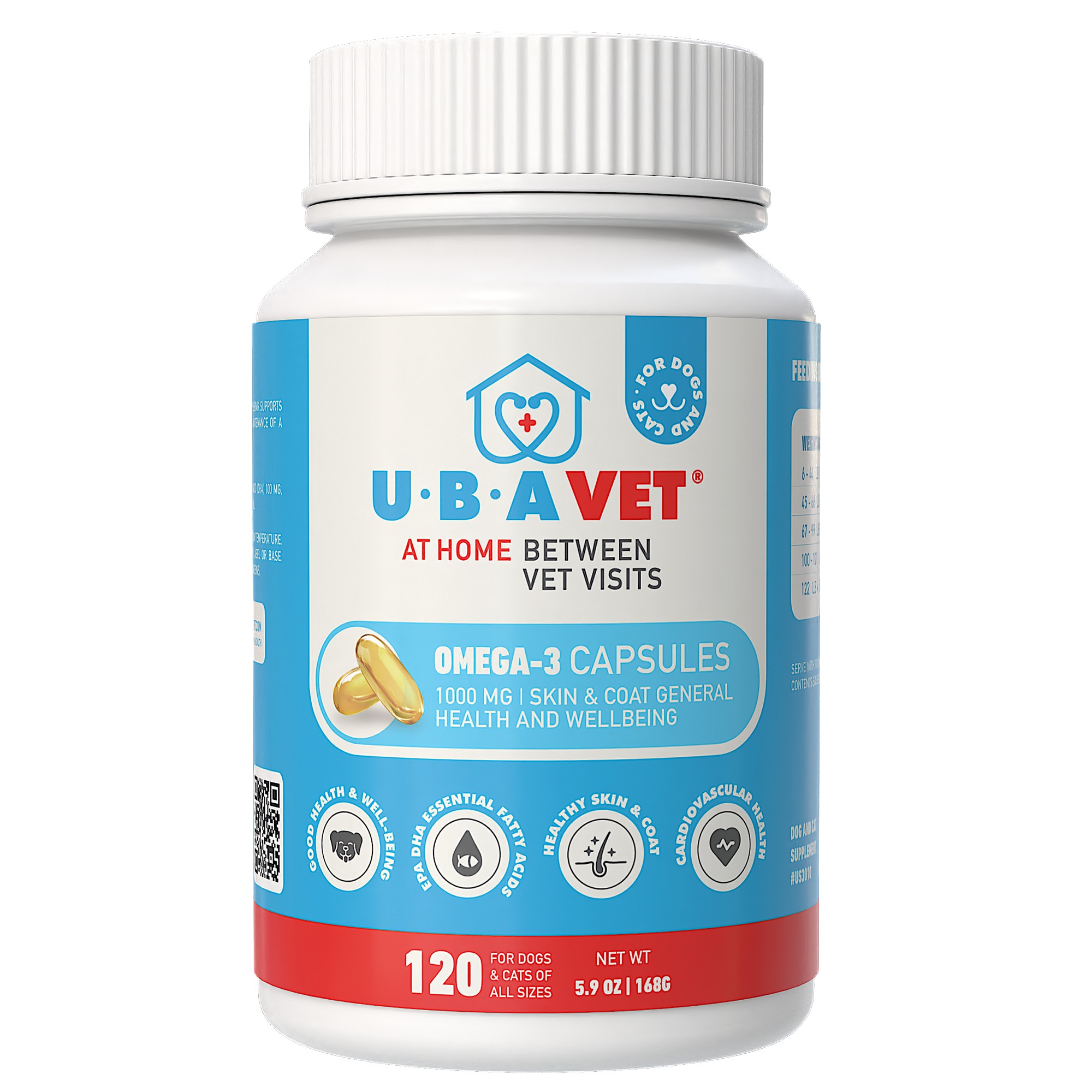 Promote pets’ health from the inside out with UBAVET Omega-3 Capsules, a premium daily supplement that supports skin, coat, joint, heart, and brain health in both dogs and cats.