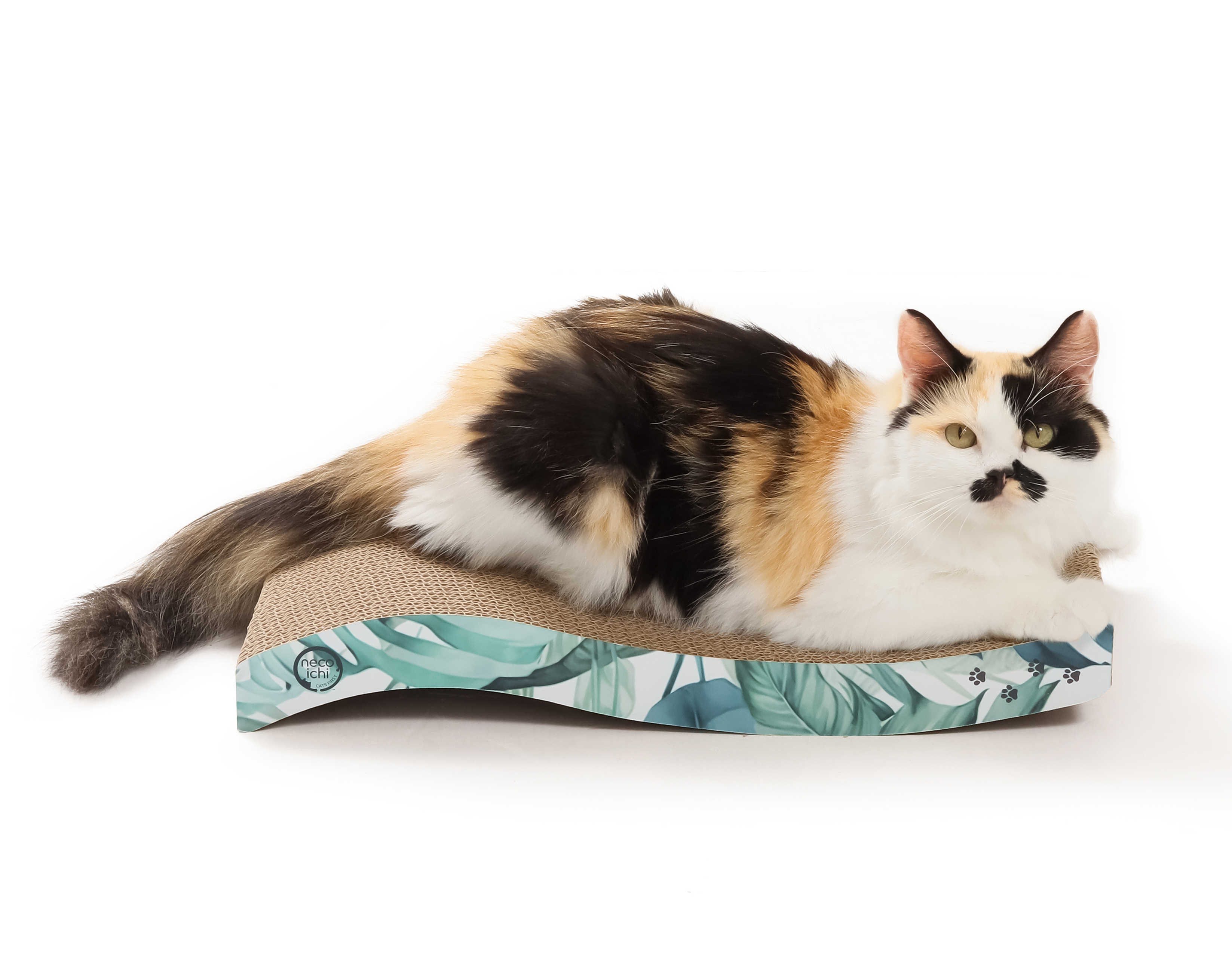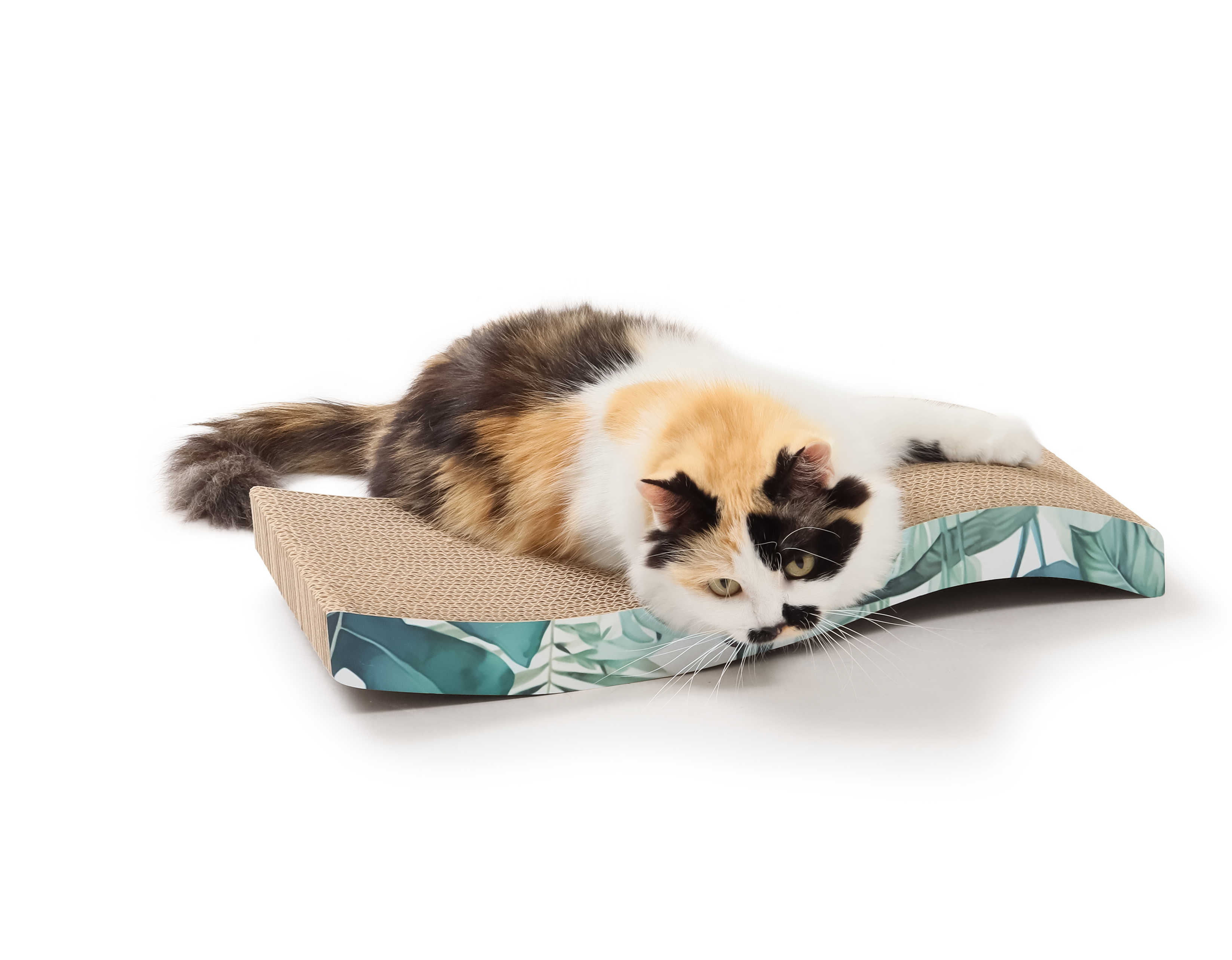 Unique capsule shape & concave design fits the cat's spine, offering comfort and reducing pressure. Multifunctional as a scratcher and bed. Made from durable, recycled materials.