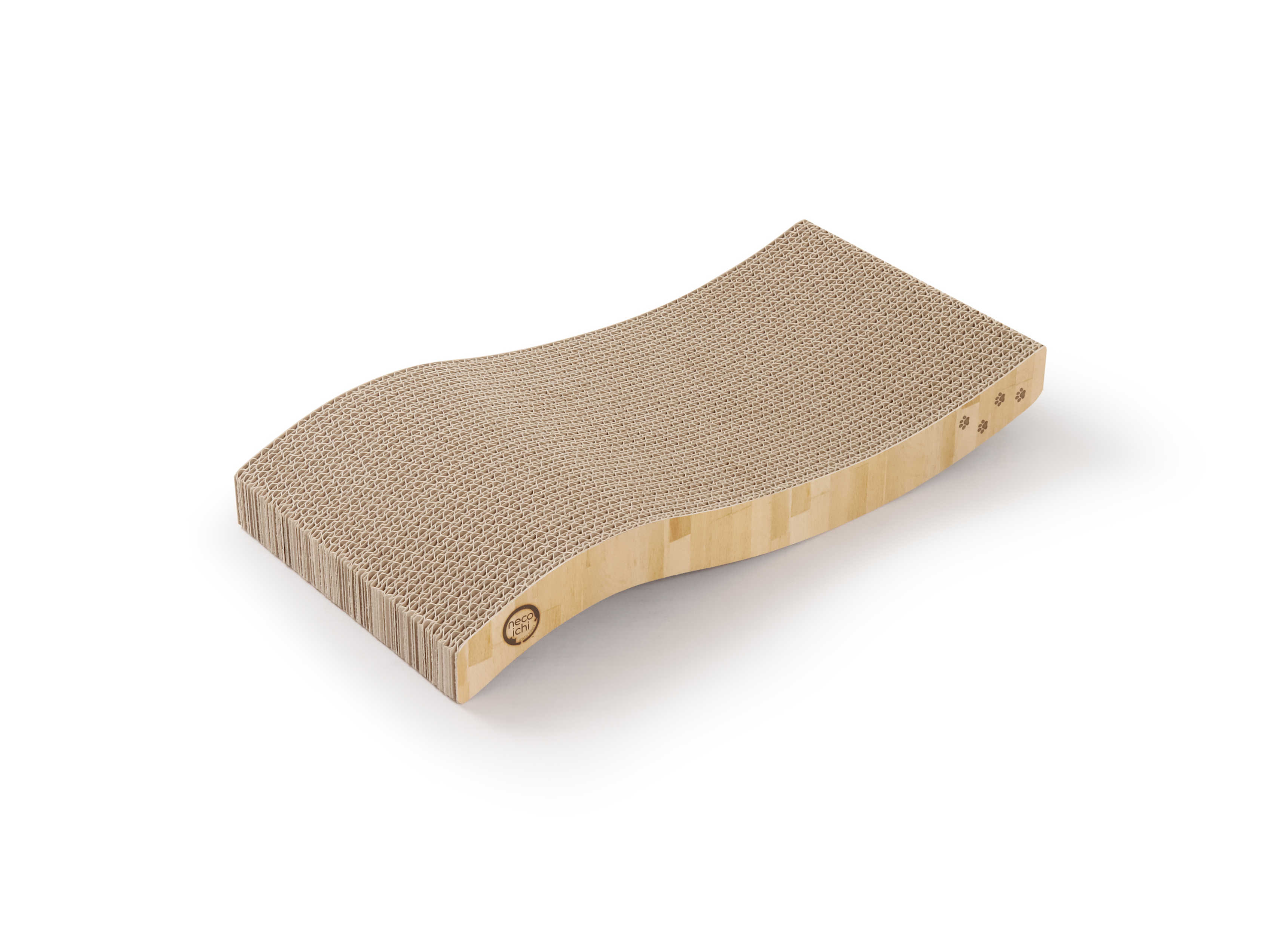 Unique capsule shape & concave design fits the cat's spine, offering comfort and reducing pressure. Multifunctional as a scratcher and bed. Made from durable, recycled materials.