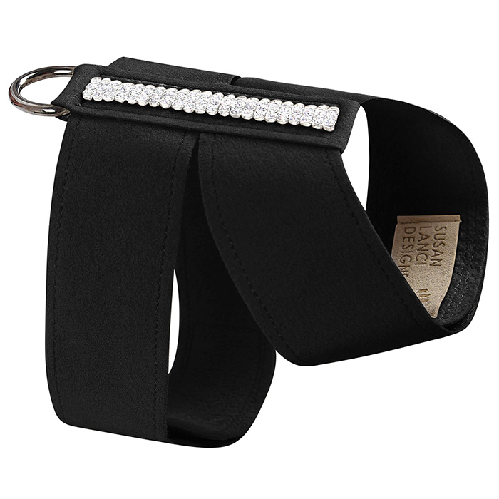 World’s Finest European Crystals The Glimmering rows of premium Giltmore Crystals throw off a brilliant array of color and sparkle for elegance and class. All crystals are made with an innovative lead-free formula, and due to their proprietary cuts and coatings maintain their brilliance and shine thru decades of use. The Tinkie Dog Harness has an elegant design that offers a glamorous look while being comfortable for your dog and easy for you to maintain. Made from Ultrasuede® fabric with the soft texture and feel of premium suede. Ultrasuede® also has the highest grade of durability, making this harness resistant to stains and discoloration, it is even machine washable! Any pulling is across the shoulders and not the neck, resulting in pure comfort for your dog. Hook-and-loop closures make for a no-fuss, secure fit. Handcrafted to order in Sunny San Diego, California, USA.