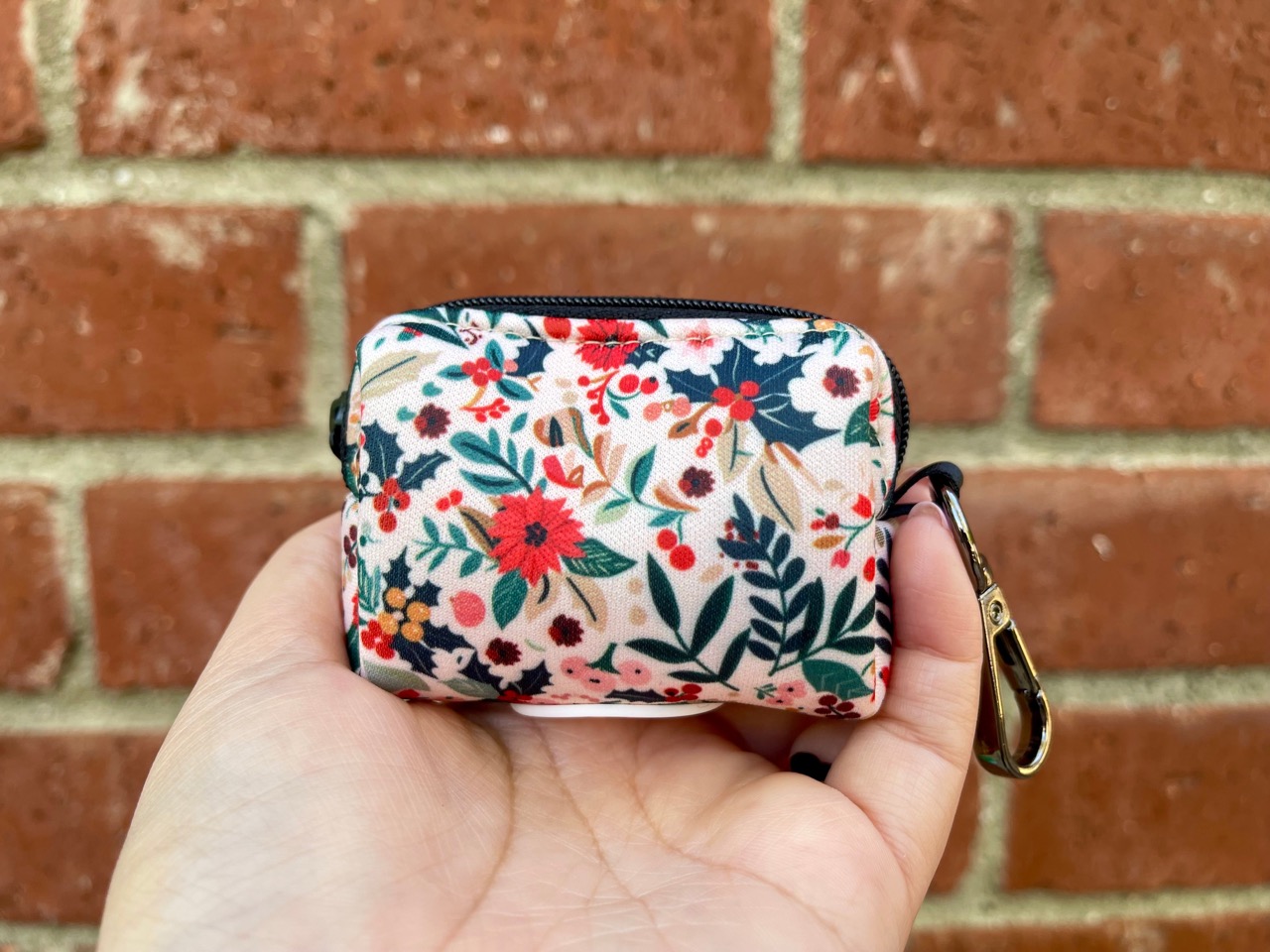Bring a touch of cozy elegance to your winter displays with Holiday Floral - a soft cream poop bag holder featuring poinsettias, berries, holly leaves, and winter greenery. Made from recycled neoprene, it’s a lightweight, functional accessory perfect for seasonal gift sets, dog mom bundles, and stylish leash walls.
