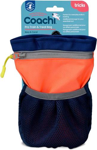 The Coachi Pro Train & Treat Bag is a very practical treat pouch that has been designed with many useful features. This treat bag is perfect for walking, puppy and dog training, professional use and multi-dog households. This generously sized bag has easy access to keep those tasty treats to hand and an invertible liner for easy cleaning. The secure zipped front pocket and front accessory pouch are perfect to store poop bags, clickers and other accessories. It has a secure carabiner, separate belt clip and traditional belt loops for easy attachment, to either waist band, belt or pocket. There is a wide opening for easy treating and a secure hidden magnetic closure to keep your treats safe and avoid spillages! The soft neoprene top and contrasting colors, make it super stylish too! The Coachi range was created by the experts at Company of Animals and it is designed to focus on promoting effective, humane and positive methods, making training simple and rewarding for both owners and their dogs.