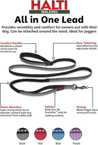 The Halti Active Leash provides great versatility and comfort for owners and their dogs. It can be used in a variety of ways to suit dog acitvities, from city walking to relaxed strolls, to training and managing large boisterous dogs. It can also be used for walking two dogs and is perfect for puppies too! Reflective 3M™ Scotchlite stitching increases the visibility and safety of your dog in low light. All of the Halti Walking Range boasts the same quality and expert design that our customers have come to expect from Company of Animals, the makers of the world-famous Halti Headcollar. Bringing together style and functionality, the range comes in four vibrant colors with smart two-tone webbing.