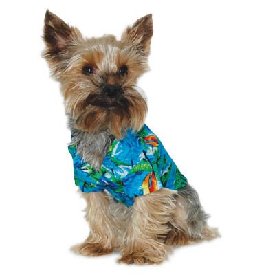 Don't forget this shirt before you take your poochies to the beach! Featuring a unique tropical island pattern, this snap button, soft thin cotton shirt...