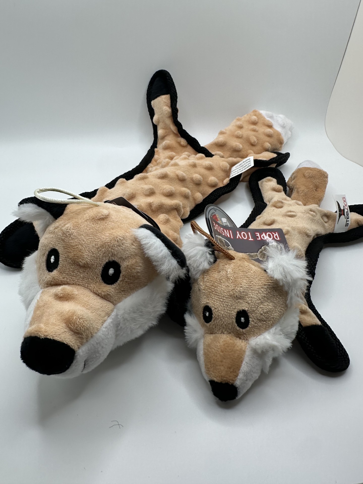 This Bumpy Flat Fox may be slick, but he won’t be hiding for long. With a tennis ball head, a rope body, crinkled paws, and a squeaker to boot, this multifaceted toy will be out and about all day with your dog. Our bumpies have a Moderate Chew-o-Meter rating. Even if they do succeed in tearing through the heavy-duty seams, two more toys are ready to go for even more fun!