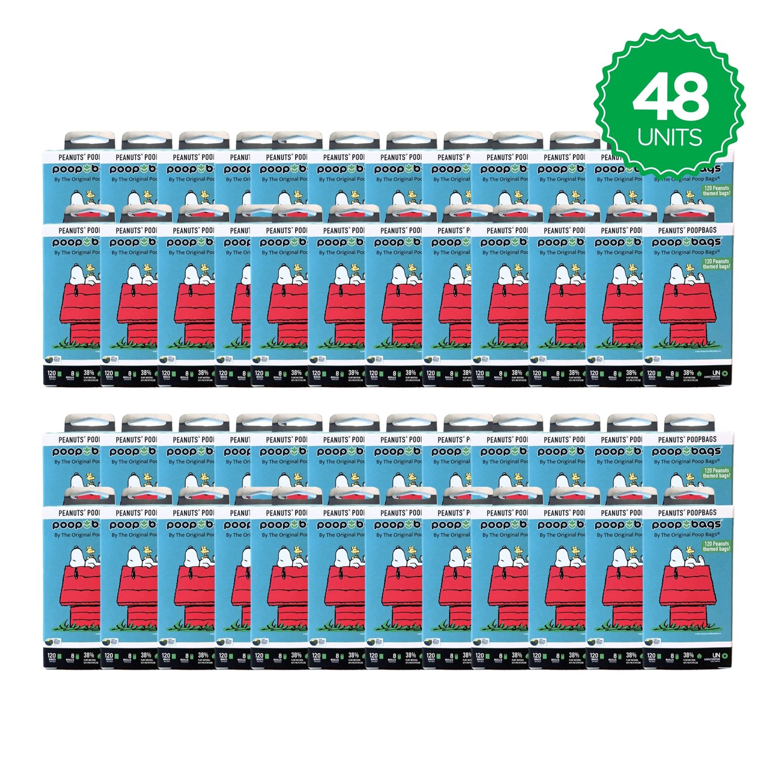 Officially licensed Peanuts® poop bags. Iconic Snoopy design, unscented, leak-proof, and compatible with standard dispensers. Built for strong retail sell-through.
