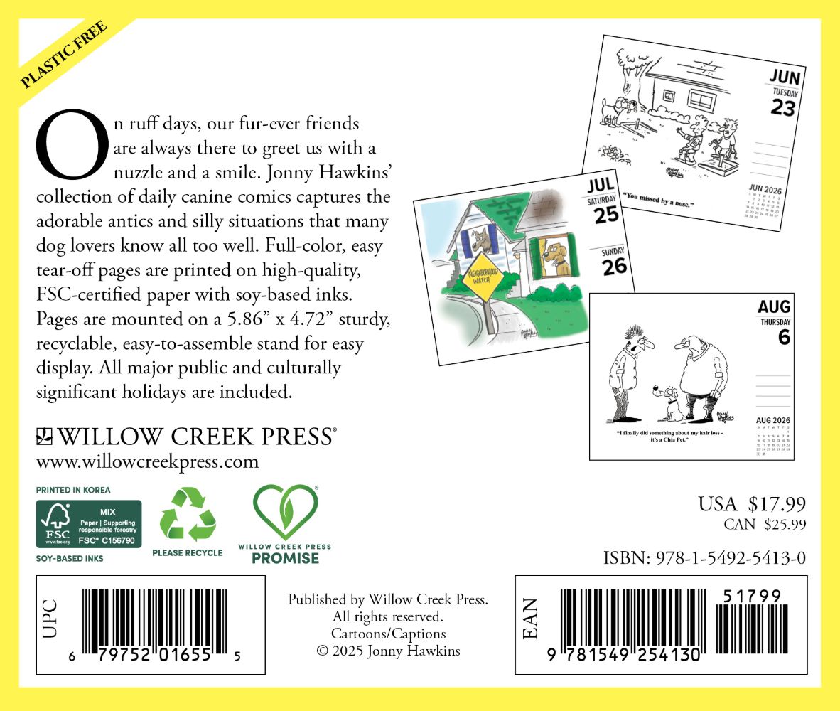 CANINE COMEDY – Get your daily fill of tail-wagging humor with Jonny Hawkins' Dog Cartoon-A-Day calendar.