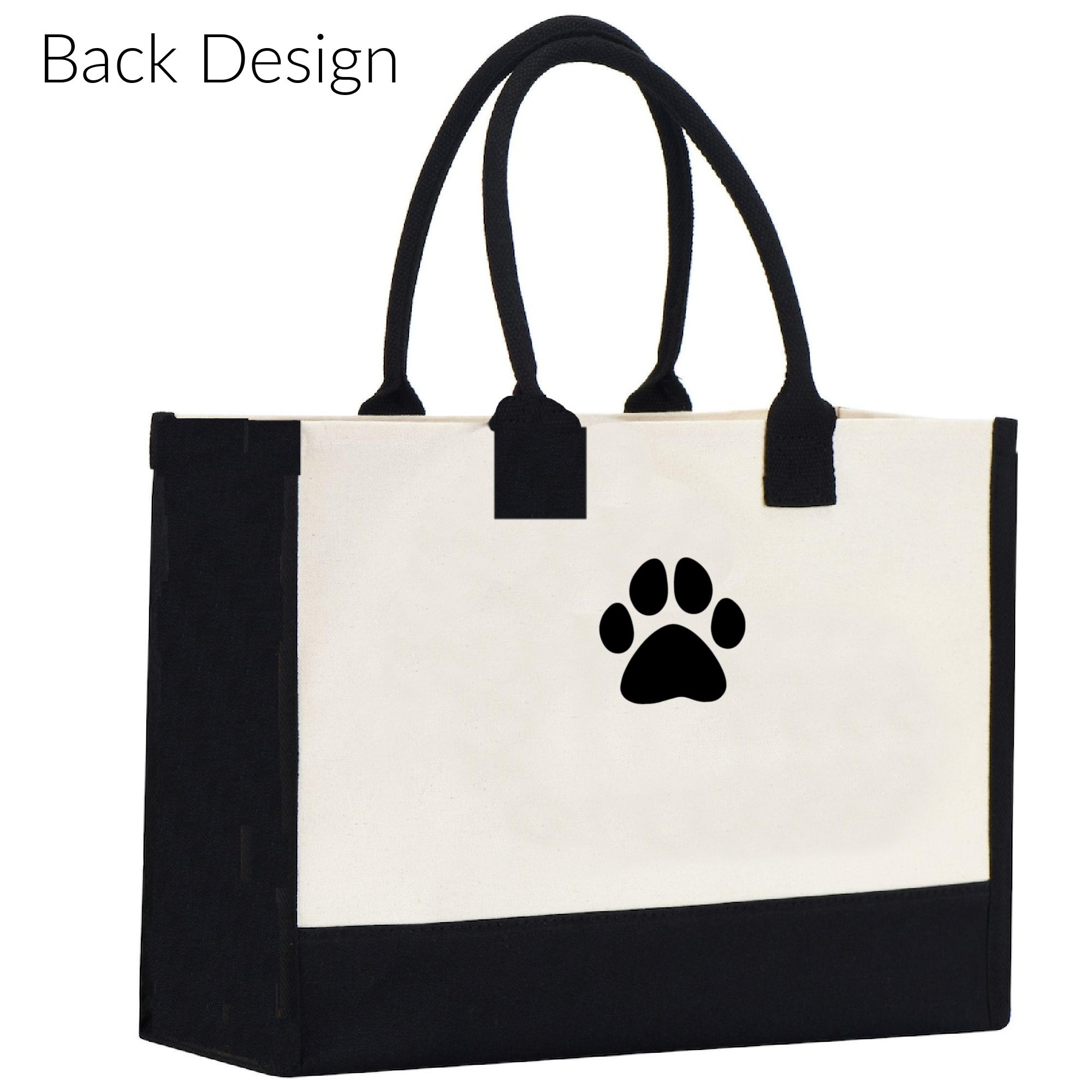 This stylish "mid-weight tote" is made of 100% cotton canvas, 10 oz weight with a matte vinyl design printed on FRONT & SMALL PAW ON BACK