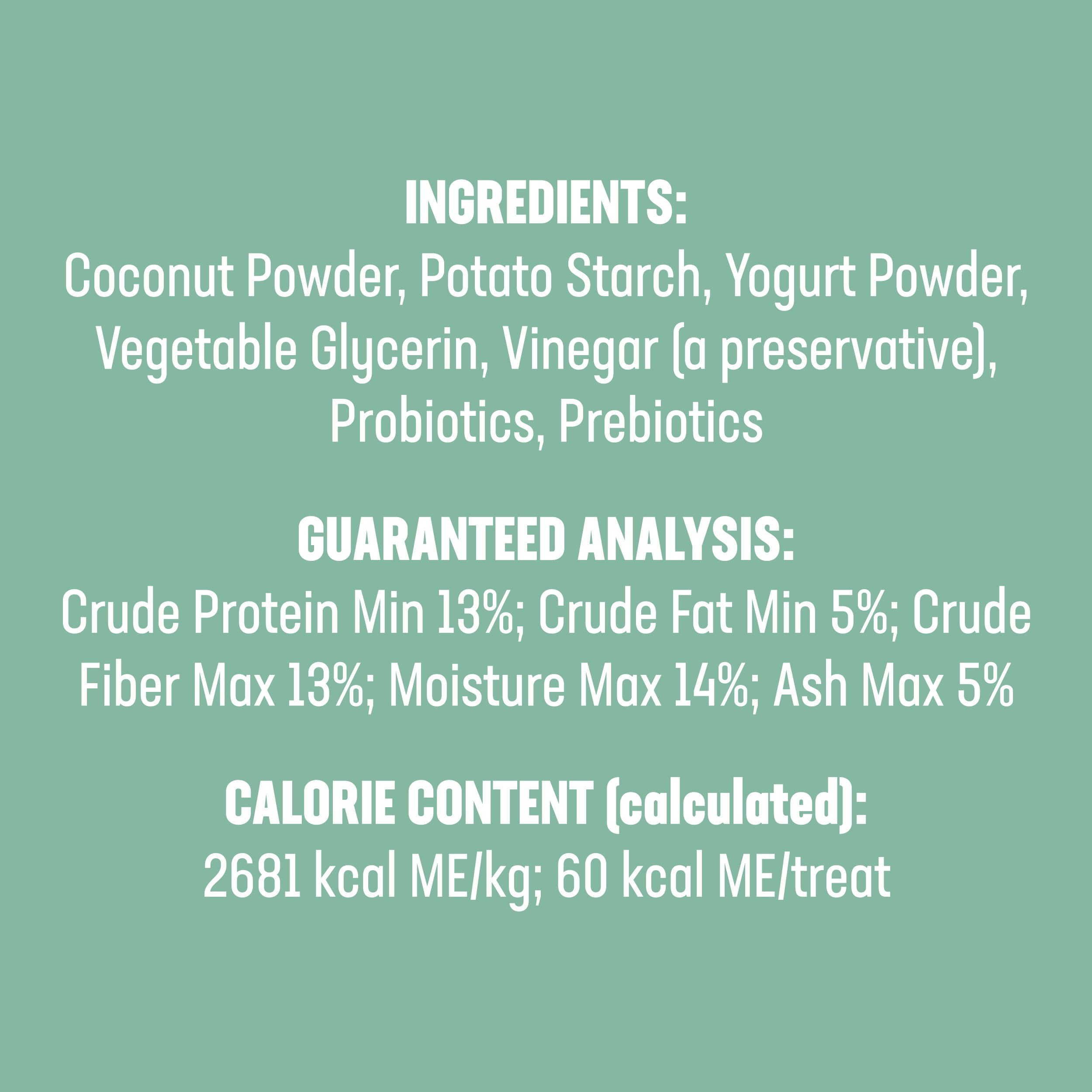 Yogurt Sticks® are a health and wellness treat for dogs. These health-conscious coconut & yogurt treats are loaded with Prebiotics and Probiotics that strengthen your pup's gut health and supports building a balanced digestive system. They are made with the finest natural ingredients, no artificial flavors or preservatives, and are lactose, grain, corn, soy, and gluten-free. These treats are as nutritious as they are tasty.