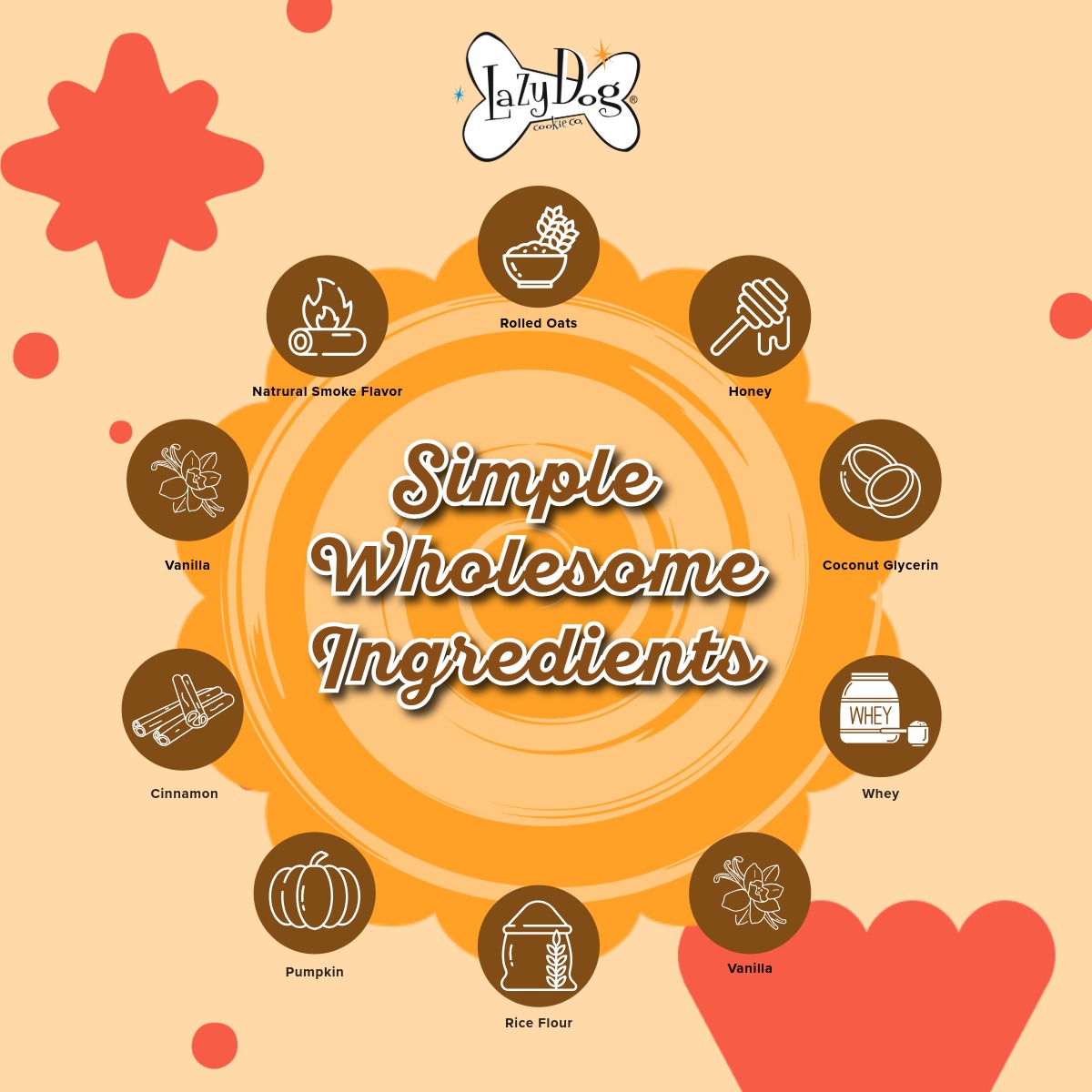 Ingredients: Rolled Oats, Honey, Coconut Glycerin, Whey, Vanilla, Rice Flour, Pumpkin, Cinnamon, & Natural Smoke Flavor