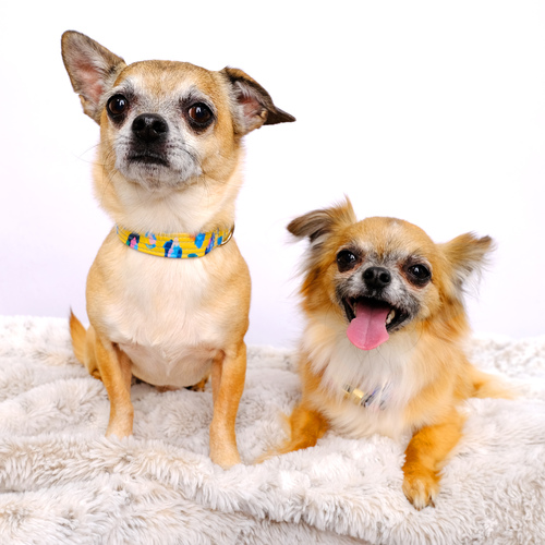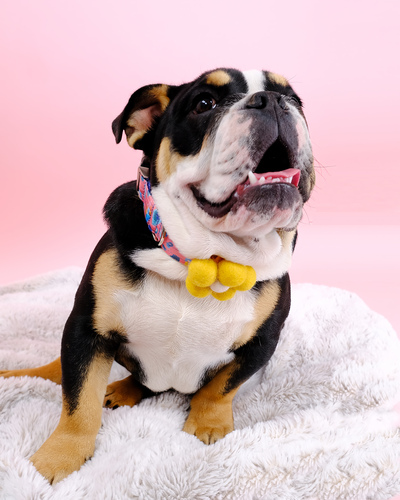 Matching key fob, flower accessory, and leash in the shop! Comes on Peacock Blue - Yellow and Sky Blue - Coral unless otherwise requested.