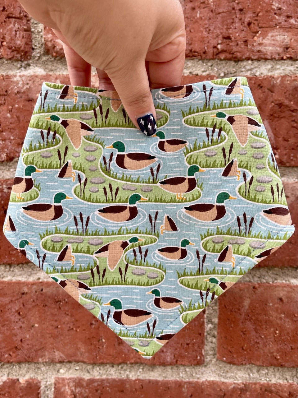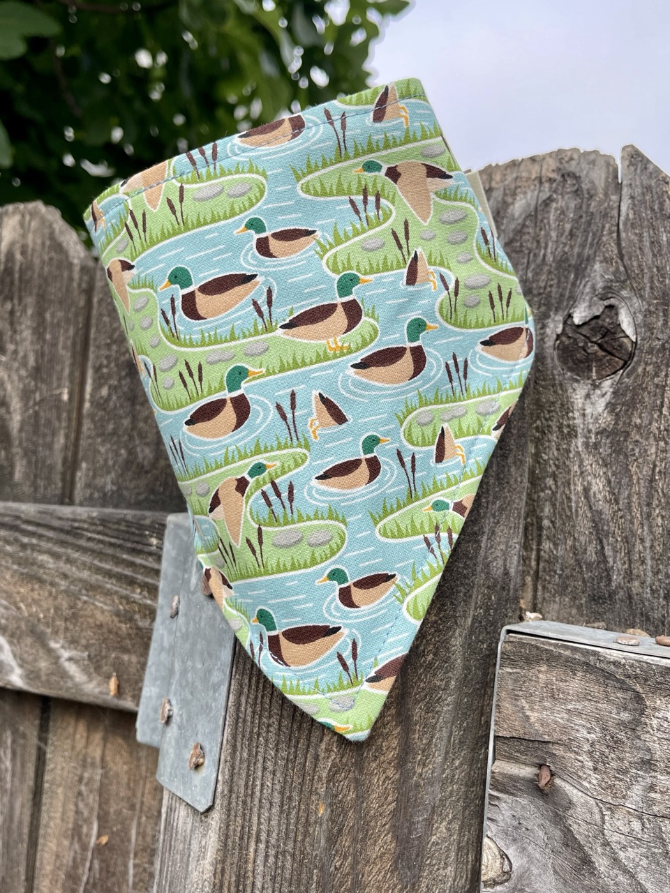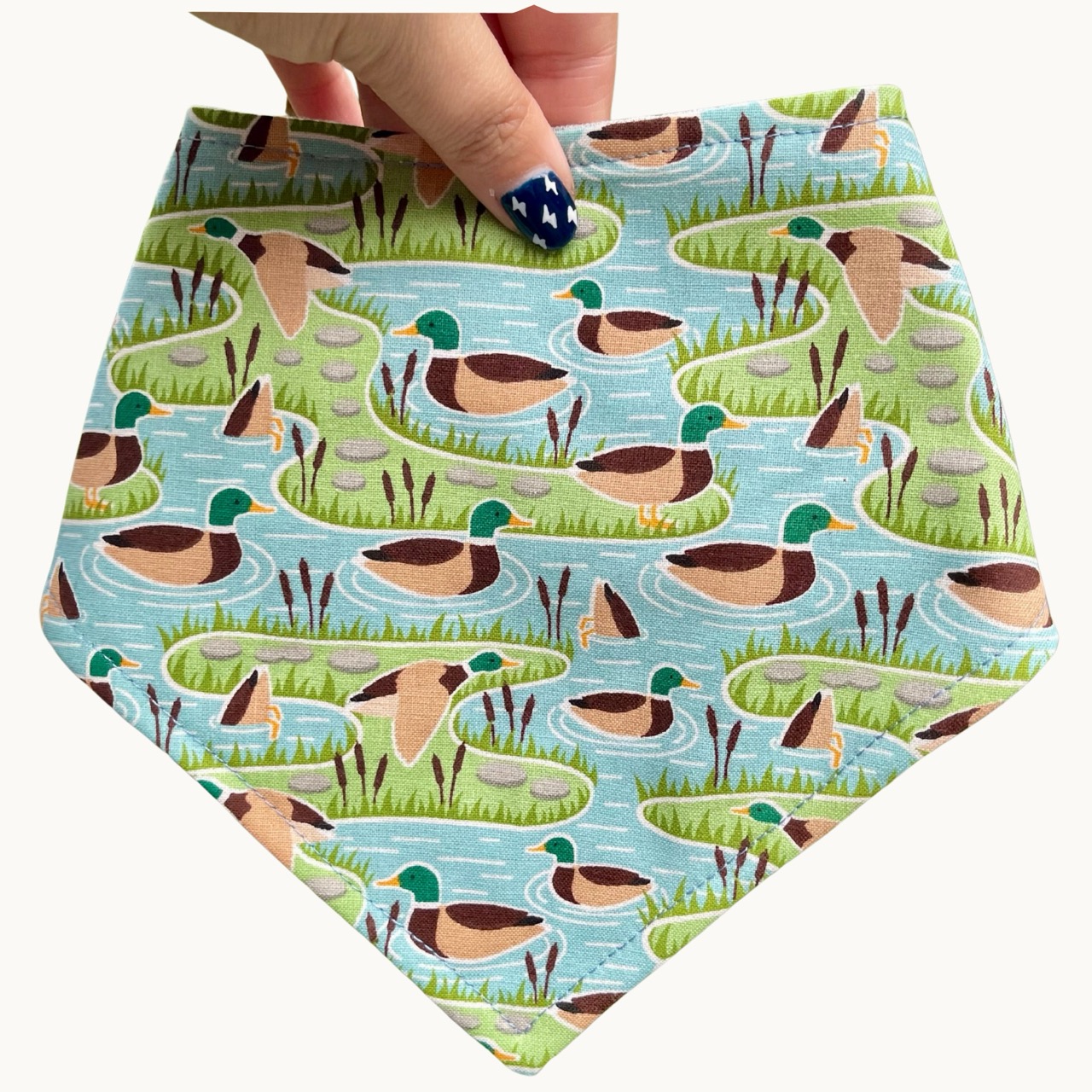 Duck Duck Woof – Lake Dog Bandana | Aqua Blue with Mallards | Organic Cotton | Handmade in LA