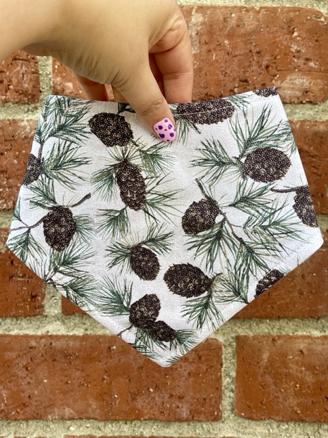 Capture the magic of the season with our Frosted Pines bandana! 🌲❄️ Featuring delicate pine branches and glittery pinecones on a soft white background, this snowy forest design is perfect for winter gift sets, cozy boutique displays, and pups who love a little sparkle in their step.